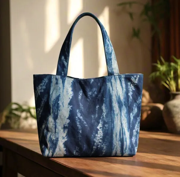 The design of the “Ink Blue Breeze” tote bag is inspired by the age-old wax dyeing technique, which has retained its unique beauty and value for centuries. With natural plant dyes and hand-painted patterns and textures, each bag carries a flowing natural color and design that reflects the artistic inspiration of nature. The deep blue tones are both calming and elegant, making it suitable for various occasions and outfits.