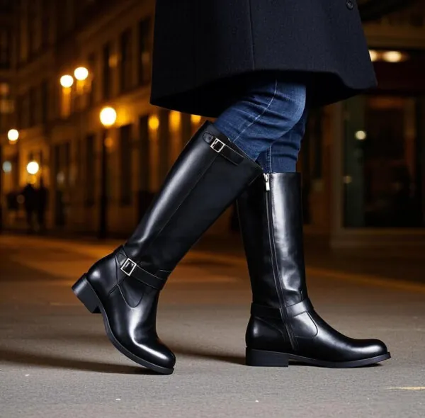 In the chilly mornings and dusky streets of autumn and winter, staying stylish while fending off the cold can be a challenge. Especially for those who don’t want to sacrifice comfort for style, choosing the perfect boots becomes essential. Introducing the “Nightfall Wanderer” Knee-High Leather Boots — not just a pair of warm boots, but an attitude that allows you to confidently stroll through the night, merging warmth and boldness with ease.