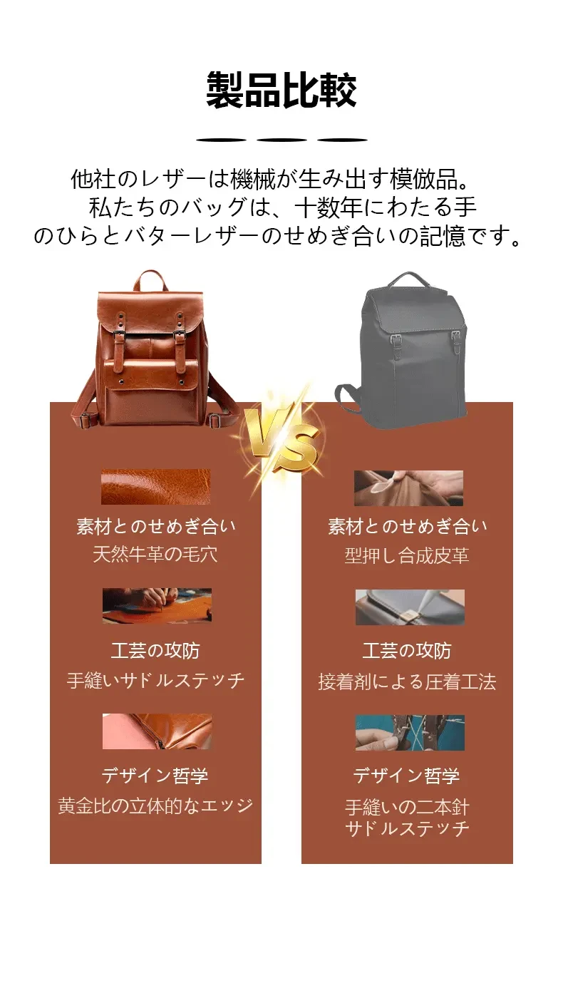 ハンドメイド本革ファッションリュック—3色から選べる、手作り。クラウドファンディング限定販売。