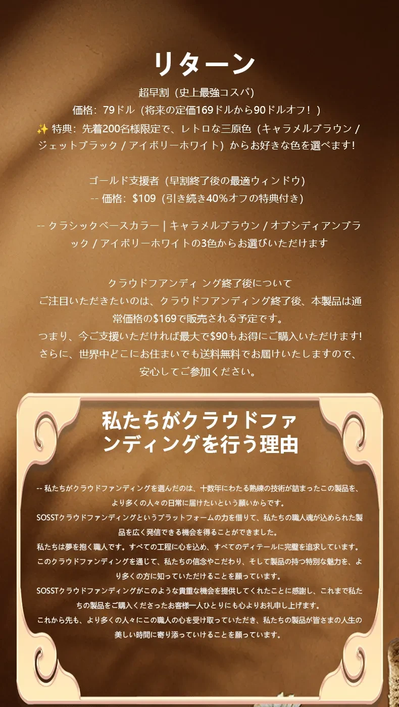 ★ 特典:先着200名限定!クラシックなブラウンカラーを選択可能!