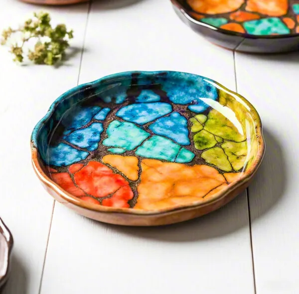 The “Artistic Time” handmade clay plate, handcrafted by artisans, features vibrant colors and irregular shapes, exuding unique artistic charm. It is not just a practical dining item, but also a piece of art that adds color and creativity to your home decor.