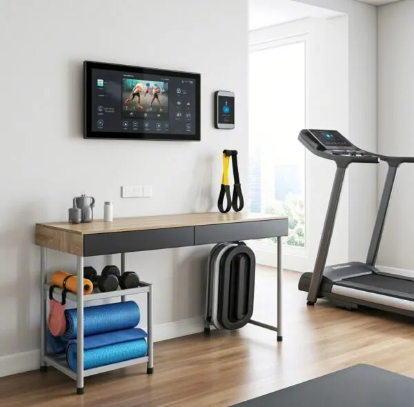 To keep your home gym organized, we designed a storage rack to help you neatly store your fitness equipment. The rack is adjustable, accommodating different sizes of equipment. Whether it’s dumbbells, resistance bands, or yoga mats, everything can be stored neatly, making your home both organized and fitness-friendly.
