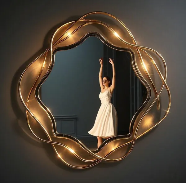 Each “Dance of Light and Shadow” mirror is meticulously crafted by skilled artisans using high-quality metal materials. Through detailed carving and polishing techniques, the frame is designed to evoke a modern yet artistic feel. The surface of the metal frame is treated to create smooth lines and dynamic light-shadow effects that resemble a living, flowing artwork. From every angle, the mirror presents different reflections, allowing you to appreciate the play of light and shadow in unique ways.