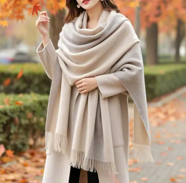 This shawl is not just a practical item for warmth, but also a stylish accessory filled with warmth and sentiment. In this autumn and winter season, the “Warm Memory” wool blend shawl will accompany you through every cold day, elevating your overall look with elegance while keeping you warm. Whether you’re attending a gathering with friends or strolling down the cold streets, it will be a symbol of your warm memories, a perfect finishing touch to your fall and winter wardrobe.